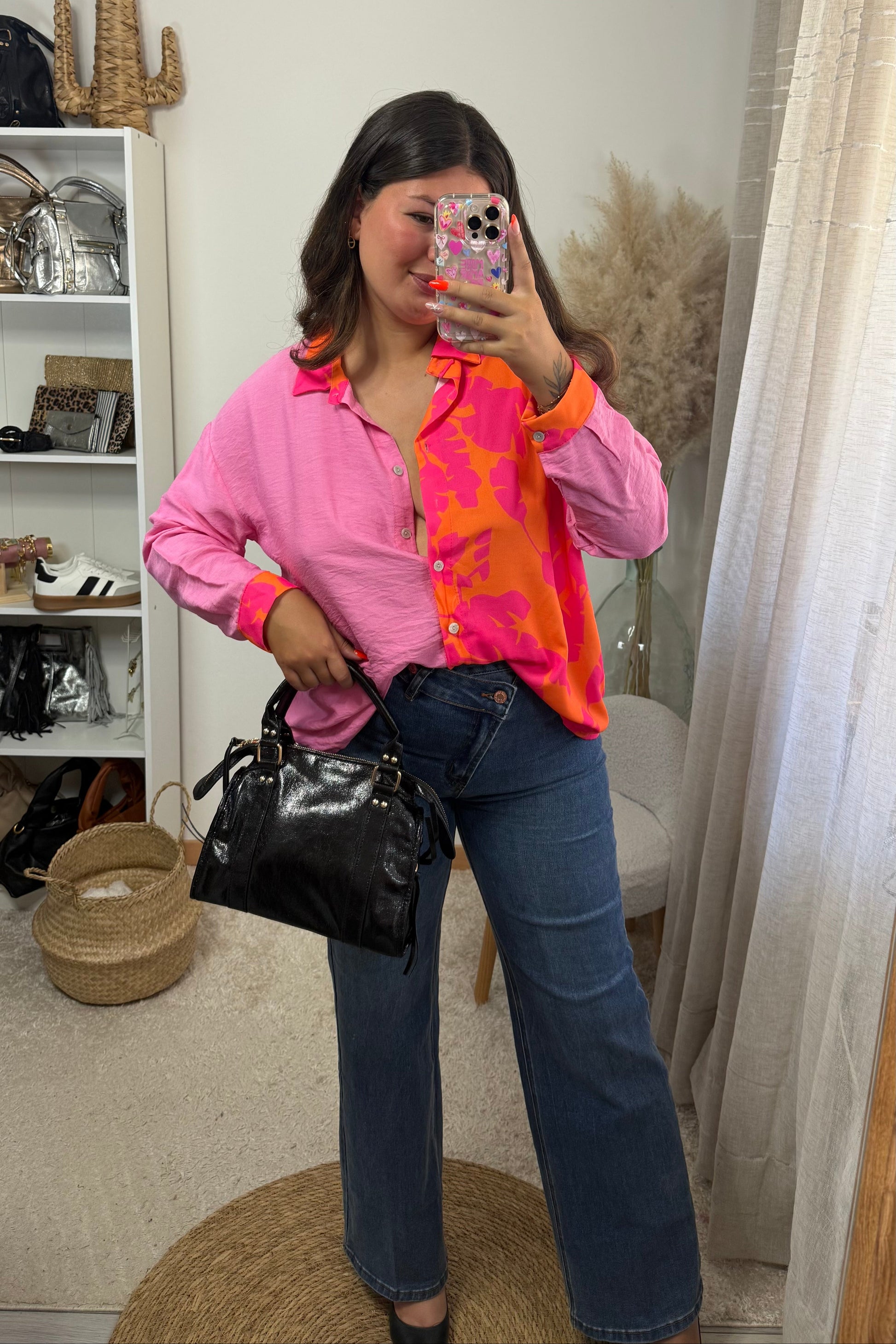 Tendance et pleine de peps, cette chemise joue sur un effet bi-color rose et orange pour un look moderne et lumineux.